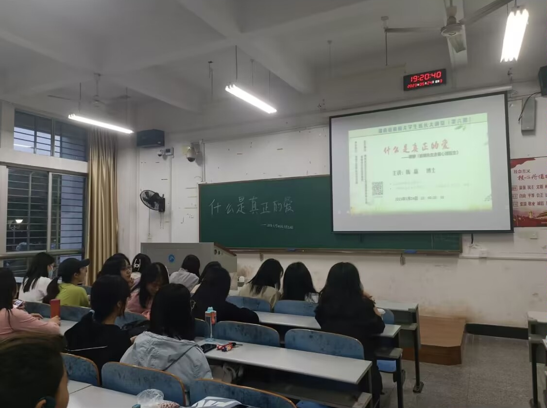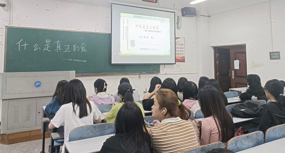 5月24日,新葡萄官网组织学生观看“湖南省高校大学生成长大讲堂”第六期线上讲座,本次讲座以“什么是真正的爱”为主题,由上海外国语大学陈赢博士主讲,她围绕亲身译著的《蛤蟆先生去看心理医生》展开讲解。