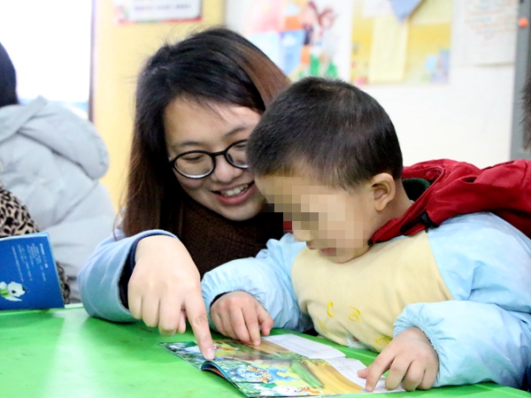 已经在特校工作了一个多学期的许老师对每个孩子的情况都极为了解,也熟悉志愿者们的服务工作。关于孩子们的学习情况,她介绍,这些孩子都是先天性失聪,不像一般孩子那样能够很快掌握发音方法,所以每天要教他们练习发音。而只有对这些孩子进行专门的发音训练,才能在他们长大以后尽可能无障碍地适应社会生活。许老师说:“比如瑶瑶和乐乐这对双生姐妹,一开始她们的父母将她们送到了幼儿园,但是发现由于语言交流困难以及性格内向,两姐妹不能很好地适应学习环境,送到特校以后,通过系统的练习才能渐渐开口说话。”