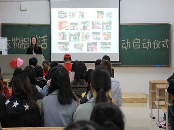 启动仪式上,商学院青年志愿团指导老师陈翠在发言中高度赞扬了本次衣物捐赠志愿活动,她说,“赠人玫瑰,手有余香。但衣物捐赠志愿活动种下的是一片玫瑰园。”商学院青年志愿团副部长陈婧雯介绍了本次志愿活动的进展情况——3月22日,志愿团在学校各区进行摆点宣传,在学生中间获得了良好反响,经过多方努力,已在我校引进了13个回收箱。