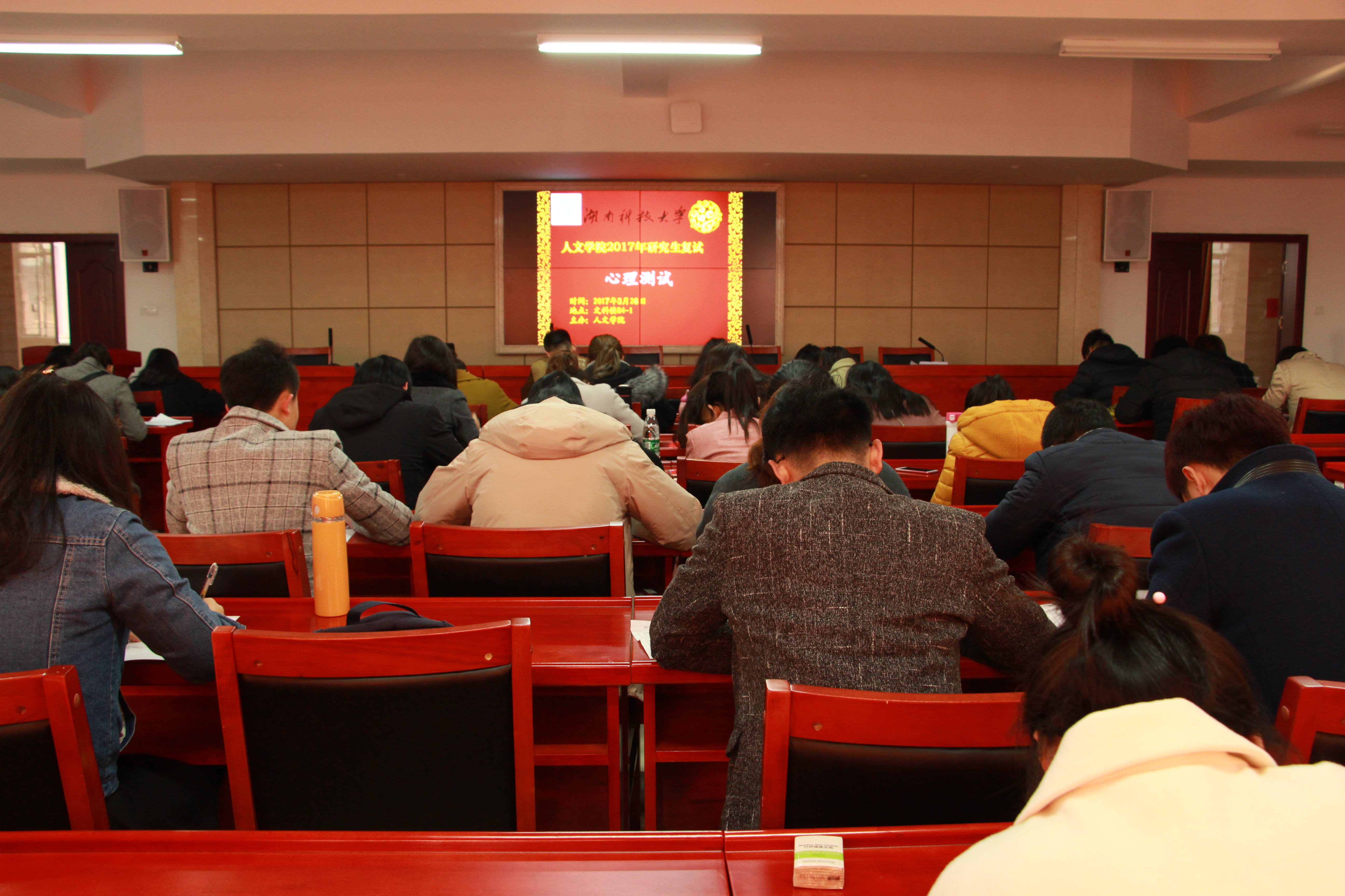 3月25日,考生均已完成研究生院的报到。26日上午,新葡萄官网于文科楼B-4-1统一进行四个专业的心理测试考试及分专业集体笔试,下午在不同考场召开不同专业的综合面试,26日晚则为各专业安排加试。