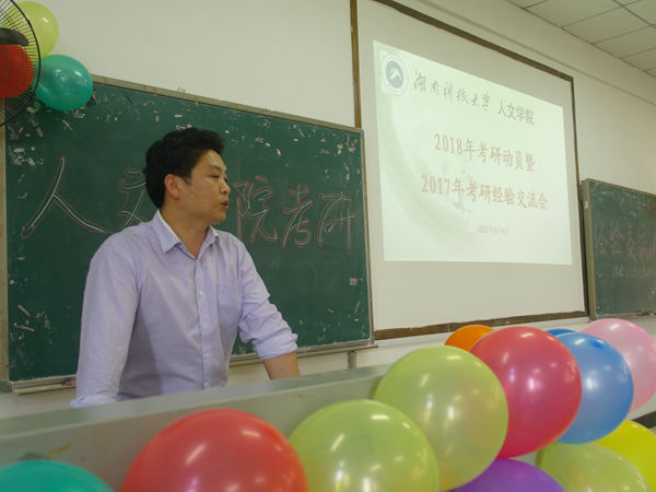 交流会现场,罗振军老师对新葡萄官网2017年考研情况作了总结:新葡萄官网13届共447名毕业生,新葡萄官网178名考研人中共有104名考上研究生,踏上了硕士研究生学习的征程。罗振军主任对各专业考研录取率作了报告,并指出:“考研能帮助学生到另一个环境去深造,为学生提供一个更好的发展空间。”