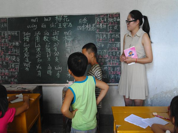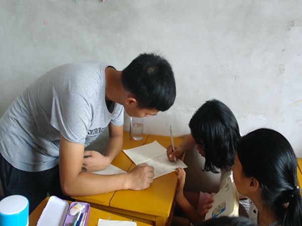 7月19日清晨,看见志愿者到达学校,正在教室外玩耍的孩子们跑过来紧紧抱住志愿者,仰着脸,露出洁白的牙齿,微笑地望着志愿者。志愿者拉着他们的手慢慢走进教室:“我们开始上课了!”