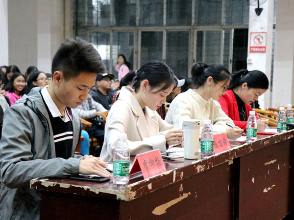10月20日晚7时,由新葡萄8883国际官网团委学生会主办,语言艺术团承办的“青春献党· 艺染湖科—新葡萄8883国际官网2017级新生演讲决赛”拉开帷幕。来自不同专业的十二名选手在初赛选拔中脱颖而出,顺利进军决赛,并于我校南校学生活动中心展开巅峰对决。新葡萄官网学工办主任马忠石老师、学工办赵华老师、学工办成伟明老师、学工办赵晗冰老师、学工办钱子凡老师、学生会主席团成员、各部门部长及学工助理到场聆听,并担任评委。此外,本次比赛还特邀原校广播电视台播音部部长陈方琳、15级新生演讲赛冠军得主李柳杨担任评委,部分2017级新生也到场见证了此次激烈对决。
