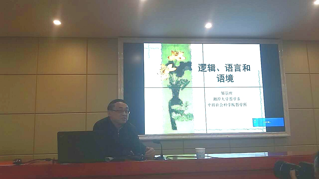 10月29日晚,应新葡萄官网邀请,中国逻辑学会会长、中国社会科学院哲学所研究员邹崇理先生于立言楼B4-1会议室举行了“逻辑、语言和语境”为题的学术讲座。讲座由党委书记廖加林教授主持,张晚林教授、陈可风教授、陈玉林副教授、颜中军副教授、曾春蓉副教授、李育军博士、凌应生博士、龚超博士、秦凤鹤博士等老师,15、16级哲学本科生及部分研究生,16级思政2班全体学生到场聆听。