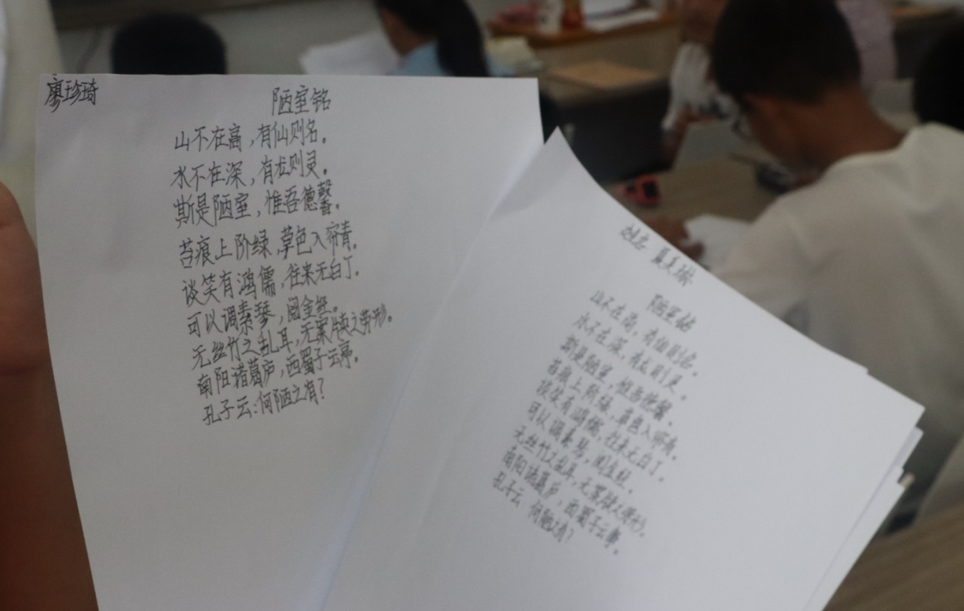 为进一步加深孩子们对中华民族优秀传统文化艺术的认知,进一步促使广大学生感受书写的独特魅力,全面提高写字水平,7月14日,新葡萄8883国际官网暑期“三下乡”社会实践团队志愿者在株洲市攸县石羊塘镇高桥少儿假期学校举行写字比赛,本次参赛的班级为一年级至八年级。