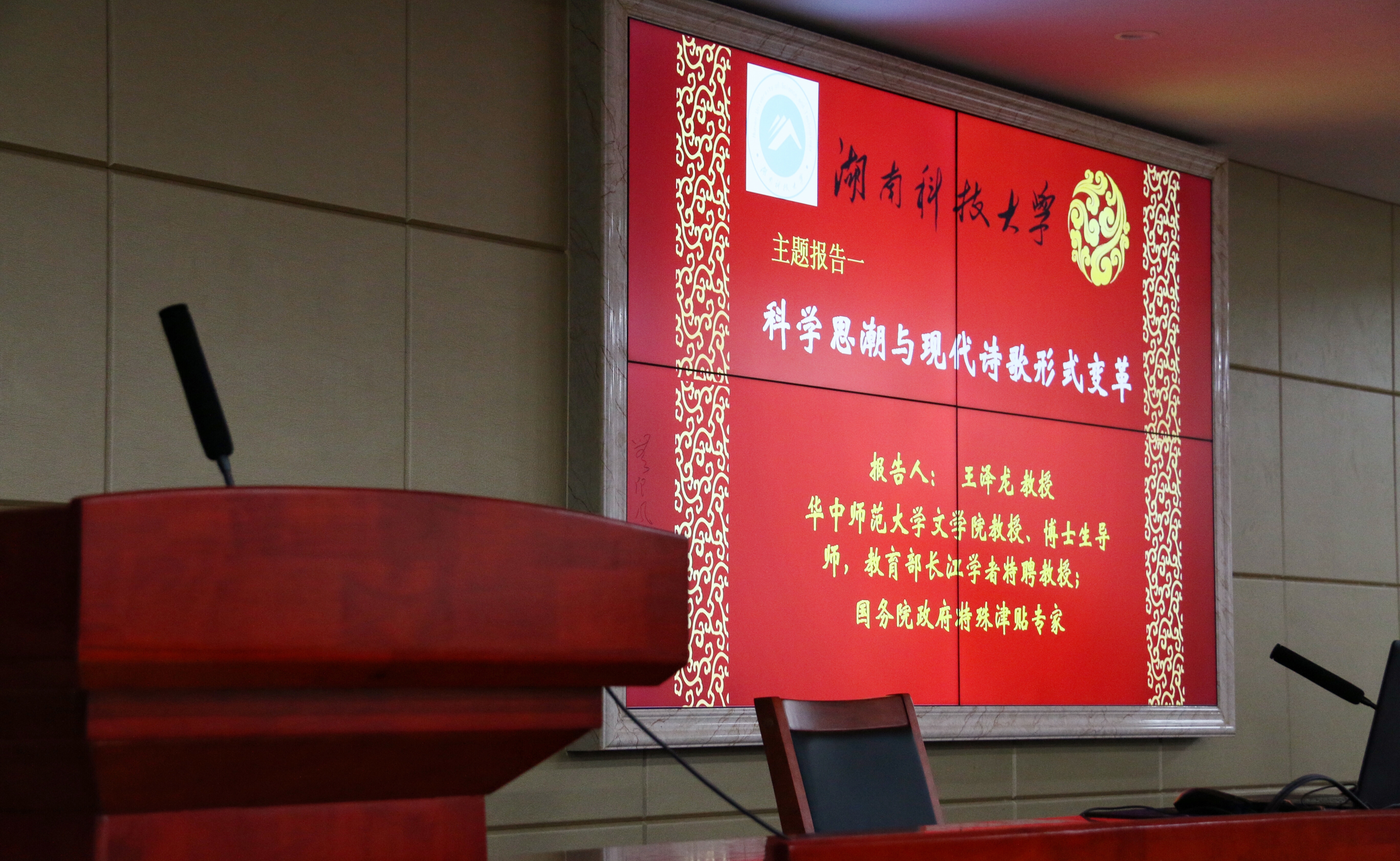 11月18日下午,湖南省第十届研究生创新论坛“人文学术创新与文化传承”分论坛主题报告之一在新葡萄8883国际官网立言楼B4-1教室举行,长江学者、华中师范大学文学院王泽龙教授应邀来我校讲学,为我校师生带来一场题为《科学思潮与现代诗歌形式变革》的讲座。讲座由新葡萄8883国际官网研究生院与新葡萄8883国际官网共同举办,吴投文教授主持讲座。新葡萄8883国际官网院长刘奇玉教授、刘郁琪副教授、胡志明博士、杨石峰博士等出席讲座,来自我校新葡萄8883国际官网、教育学院、马克思主义学院、外国语学院等的研究生及部分本科学生到场聆听讲座。