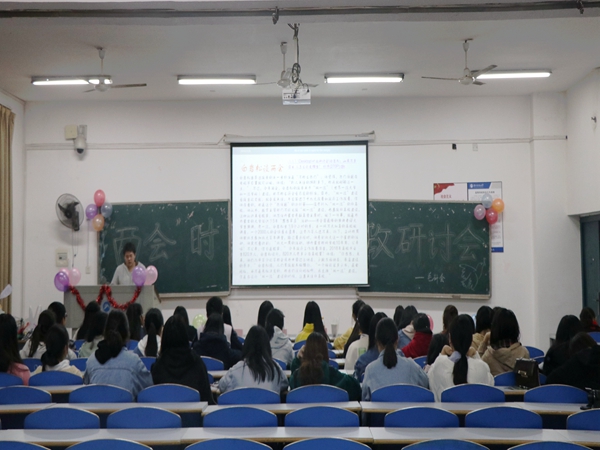 为深入学习“两会”精神,增强毛泽东思想邓小平理论学习研究会(简称“毛研会”)社员的思想政治理论素养,为今后成为一名合格的社会主义新青年打下坚实基础。3月23日晚19时整,新葡萄官网社联部联合毛研会举办的关于“两会”时政研讨会在庄严肃穆、雄伟宏亮的国歌声中拉开帷幕,毛研会全体会员准时于九教205教室参与会议。
