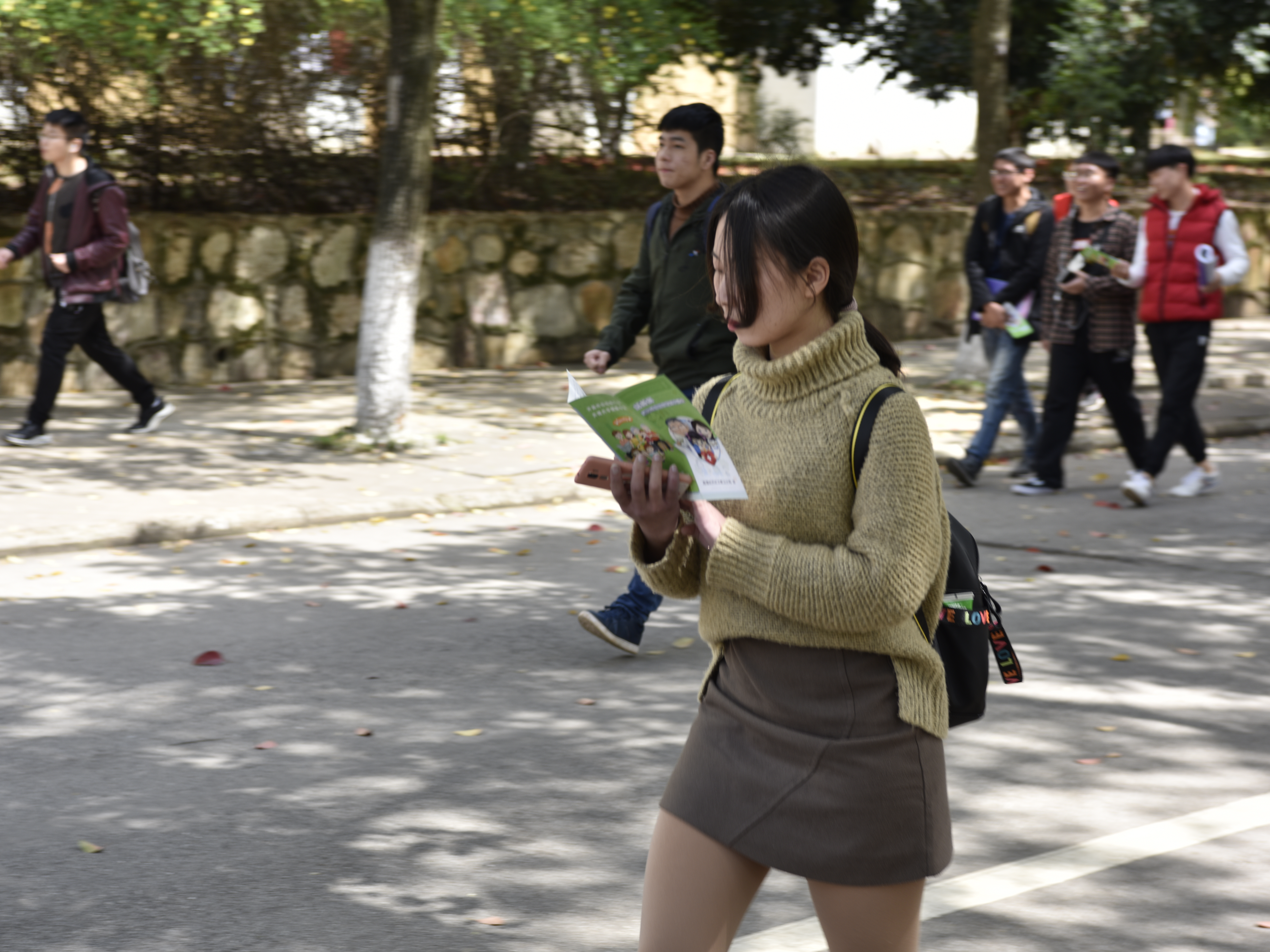本次健康宣传活动以“开展消除结核行动,共建共享健康中国”为主题,12位志愿者们统一穿着红色的服装,手里拿着厚厚的一沓“防核”宣传单,统一给走过的学生分发着。一张小小的宣传单上详细明地解释了肺结核的定义、如何传播、症状以及预防治疗的方法。不少学生在接过传单后,开始认真翻阅了起来。在志愿者们的身后,大大的展板上详细解答了同学们关于肺结核常见的种种问题。下课后,人潮当中,每个人手中都拿着宣传单边走边看,众多学生在经过展板时还不时驻足观看,而志愿者们也在一旁为学生们进行引领解说。