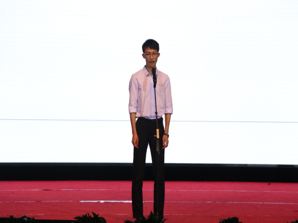 化学化工学院的王东东,一上台,就分享了一个故事。一个正打算半夜翻学校围墙去网吧玩游戏男生,却看到来送生活费却舍不得住旅馆而因此在墙角休息的父亲,自此发奋努力,成功逆袭。在大一沉迷各种游戏的他,认为大学四年那么长,挥霍一下也无妨,在看到这个故事后,深感惭愧,幡然醒悟。他认为只有不负过去,不惧未来,才是最好的方式。与科研的好奇与兴趣同行,他曾整日浸泡在实验室,曾见过凌晨三点半的科大,曾为国际专项赛苦练英语……他相信余生漫长,不必慌张,认真踏实做好每一件事,一定能等到岁月的回馈。