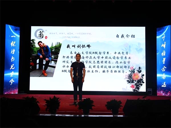 “梦起南国,逸兴惧怀壮思飞”,刘怀峰带着和善亲切的笑容,向大家带来自己的报告。作为新葡萄8883国际官网志愿团团长,他曾创新多种志愿活动形式,还代表九华参加湖南省法治文艺调研活动大赛。面对工作学习上的忙碌与父亲病危的两难局面,他即承担起家庭责任,也不忘牵挂着工作事项。如今他已成为光荣的中国共产党员。“立鸿鹄志,做奋斗者,求真学问,练真本领。”他从未放下过责任与担当,牢记新时代的使命,他为做新时代新青年而奋斗着。