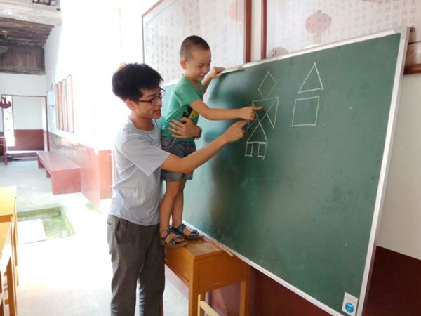 清晨,学生们陆陆续续的到达乡贤馆。老师早上好,老师早上好!向志愿者老师们问好的声音此起彼伏,一个个小天使笑的十分开心,对于他们来说上课并不是一件苦恼的事情,相反是假期最值得期待的事情。八点半,上课的哨声准时吹响。同学们快进教室,上课啦……”志愿者林点一边吹哨,一边呼喊同学们进教室。作为团队的领头羊,林点身兼数职,既要充当打铃人,准时吹响哨声。又是老师,要教幼儿园的小朋友们数学。