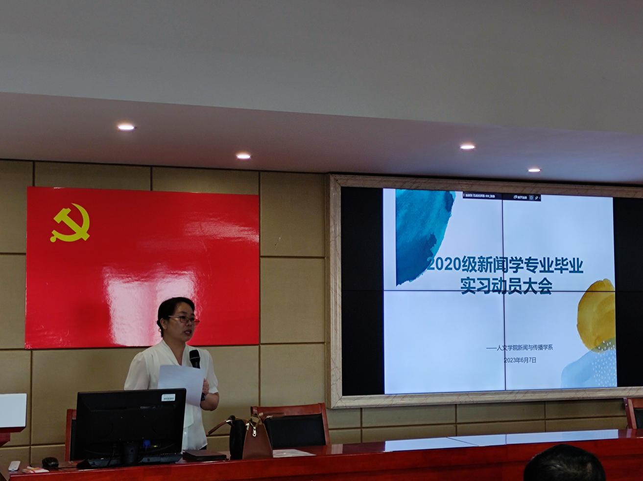 6月7日下午,新葡萄官网2020级新闻学专业毕业实习动员大会于立言楼B4-1室顺利召开。本次大会由新葡萄8883国际官网新闻系主办,新葡萄8883国际官网副院长袁星洁,新闻系主任刘艳凤、副主任王超群、新闻系老师、20级本部及潇湘新闻专业学生参加本次会议,会议由刘艳凤主持。