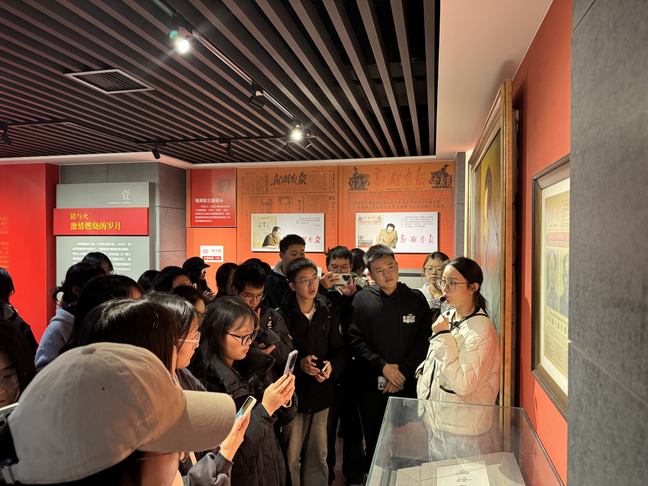 活动的第一站,学生们参观了湖南日报社史馆。在讲解员的引导下,同学们深入了解了湖南日报社的历史发展脉络,特别是其在党媒发展中的重要地位和作用。通过详细的展示和讲解,学生们进一步认识到,湖南日报不仅是地方性新闻媒体,更肩负着宣传党的方针政策、传递主流价值观的重要使命。这一环节使同学们对党媒的历史责任与社会作用有了更为全面的认知,也激发了他们对新闻事业的热爱与敬畏。