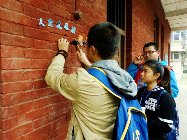 原外语系上课的教学楼二楼斑驳红墙上交错的留言十分显眼。“这些留言都传达着校友们对雨湖校区的深厚情感,但是换一种方式表达就更好了”退休教师郑老师说道。志愿者们拿出了事先准备好的清洁工具开始了墙壁清洗。用抹布擦拭墙壁上的涂鸦,用小刀刮去黑板上的广告,忙活过后,红墙显得焕然一新,而教学楼年代已久,志愿者们的手也被红墙的颜料脱落染红了。