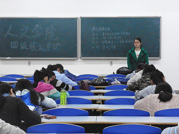 考试中,辅导员贺丽老师分别到各个考场巡查,认真查看同学们的答题情况。学院团委学生会的相关负责人员担任监考工作,贺老师交代在场的监考人员严格监考,保证考试的顺利进行。