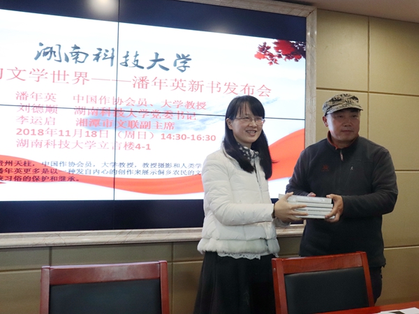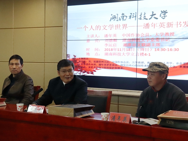 11月18号下午,新葡萄官网潘年英教授新书发布会在立言楼B4-1召开,发布会由新葡萄官网院长刘奇玉主持。我校党委书记刘德顺,湘潭市文联副主席李运启,湘潭市作协前主席孙楠雄,湘潭大学教授郑长天,著名摄影家、荷赛大奖获得者旷惠民,著名诗人曾庆仁,新葡萄官网副院长欧阳萍等诸多专家学者应邀出席。18级汉语言文学及17级新闻学专业部分学生到场聆听本次发布会。