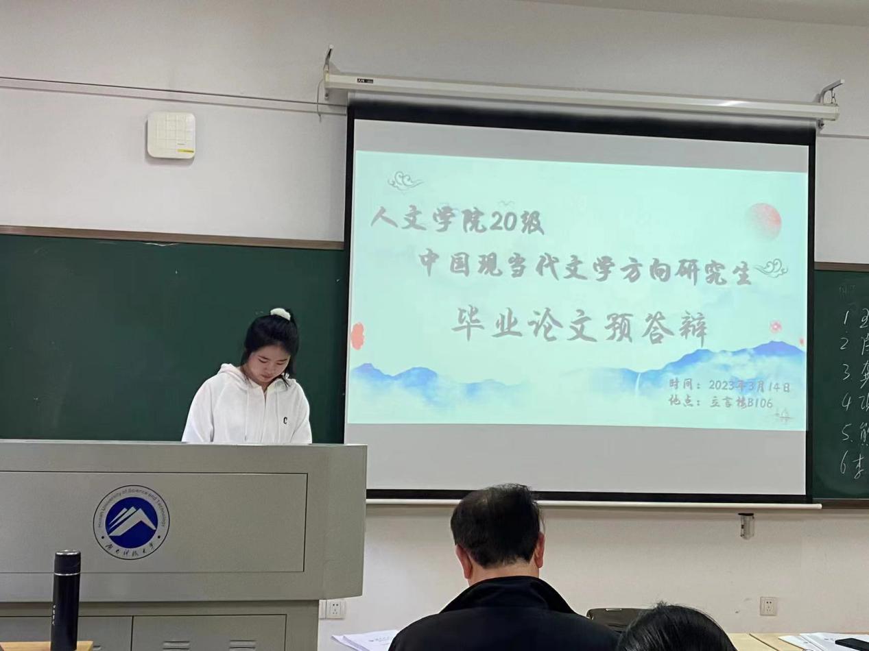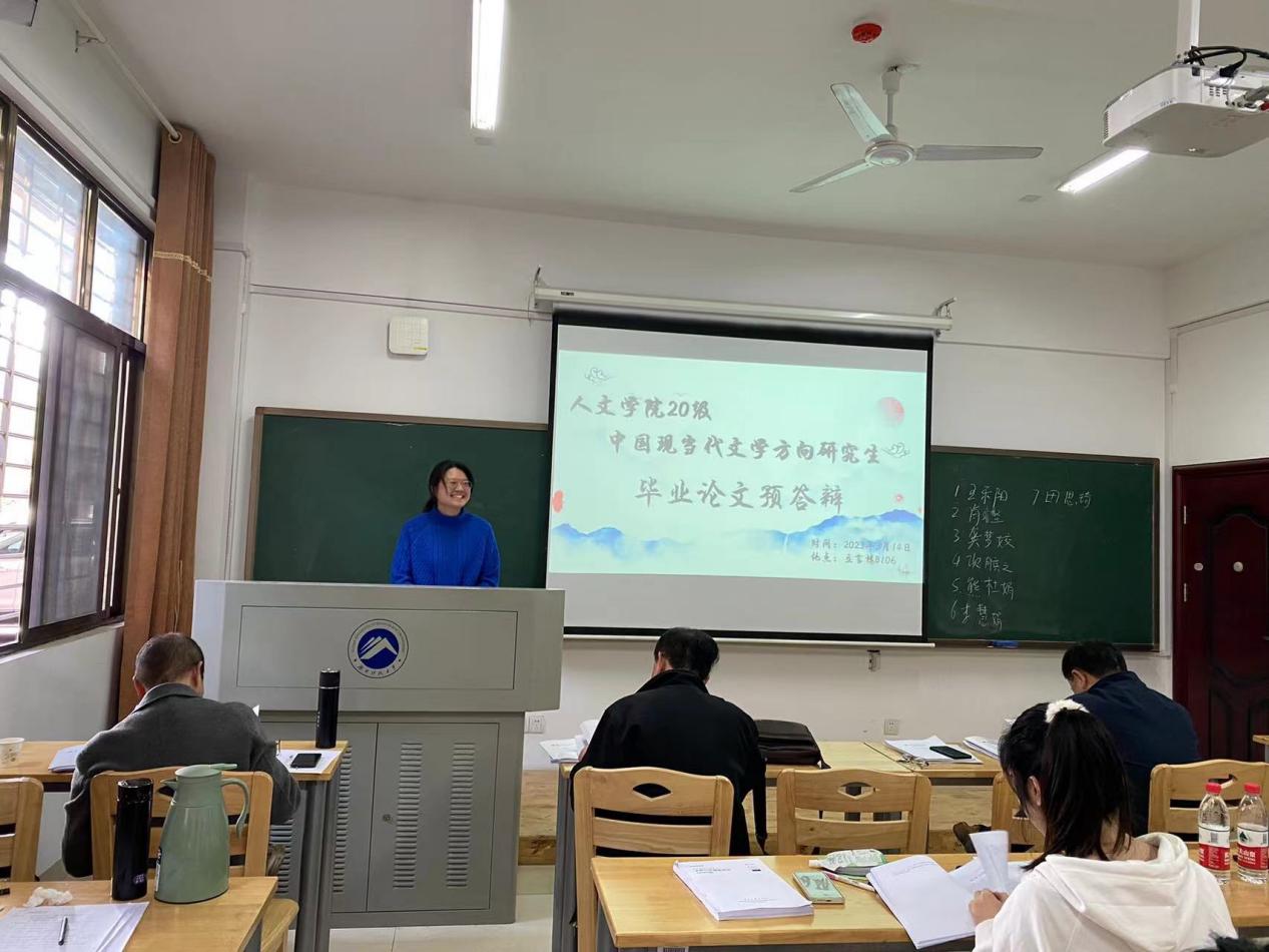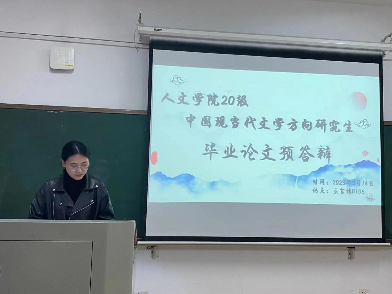 2023年3月14日,新葡萄官网2020级中国现当代文学方向研究生毕业论文预答辩在立言楼B106顺利举行。此次预答辩由方向负责人刘郁琪教授主持,彭在钦教授、袁星洁教授、吴投文教授、刘郁琪教授、梁小娟副教授担任此次预答辩的评委。20级现当代文学方向的田思琦、项膑之、肖睿壑、李慧娟、王禾阳、龚梦姣和熊杜娟7位同学参与预答辩。
