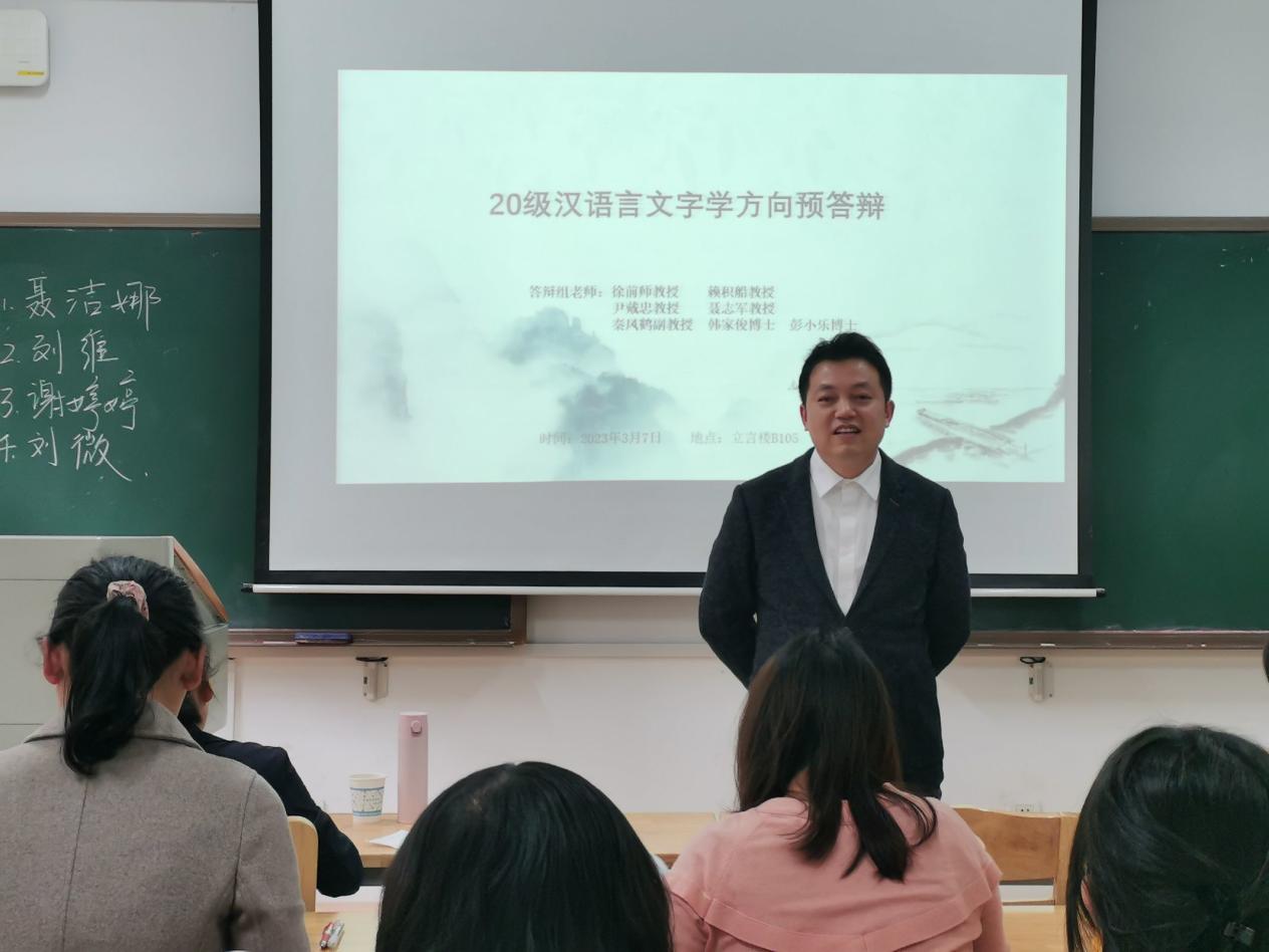 3月7日14:30,新葡萄官网20级汉语言文字学方向研究生毕业论文预答辩于立言楼B105举行。此次预答辩由聂志军教授主持,徐前师教授、赖积船教授、尹戴忠教授、秦凤鹤副教授、韩家俊博士、彭小乐博士担任点评教师,21级汉语言文字学方向研究生到场旁听。